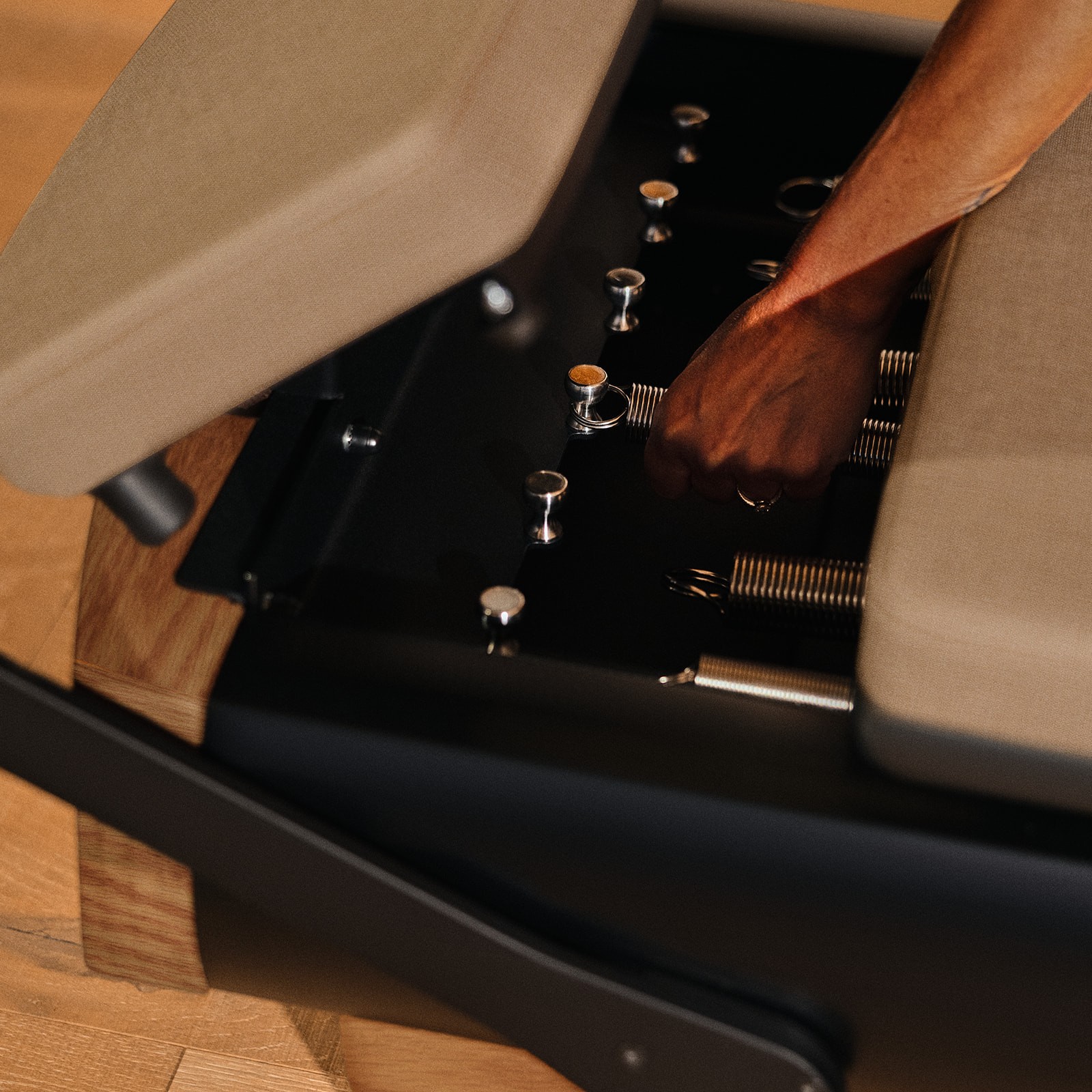 Coreformer, in partnership with NOHRD, uses the highest quality materials with an eye towards performance, durability, tactility, and natural beauty. Each piece of wood, upholstery, and frame is evaluated and handpicked to support long-term use while delighting the senses. The Coreformer is manufactured by hand by NOHRD’s experienced craftspeople, combining machine precision with the human touch to create a high-quality, enduring reformer that looks and feels exceptional.