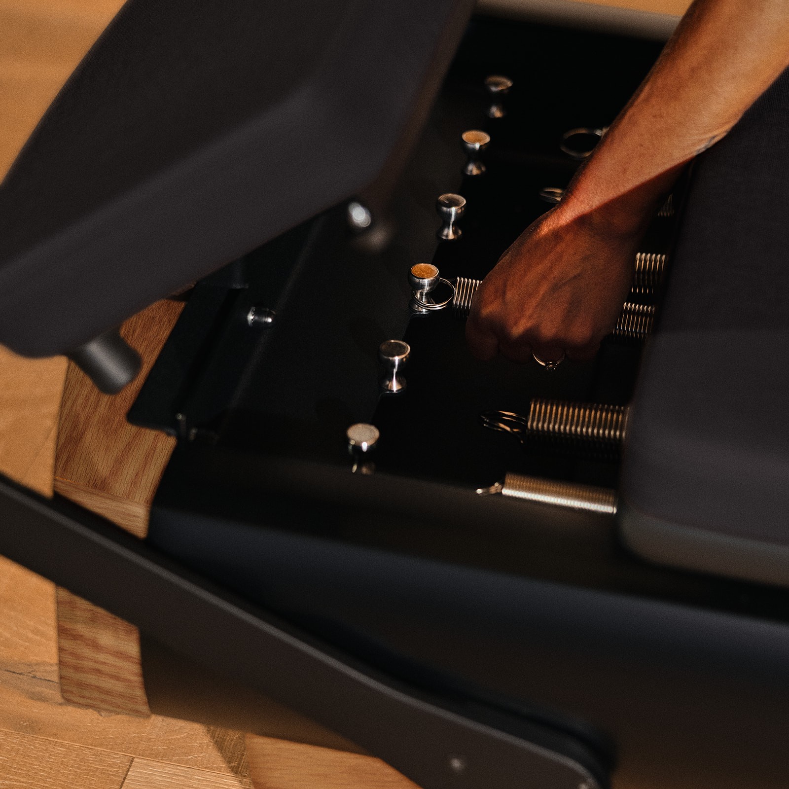 Coreformer, in partnership with NOHRD, uses the highest quality materials with an eye towards performance, durability, tactility, and natural beauty. Each piece of wood, upholstery, and frame is evaluated and handpicked to support long-term use while delighting the senses. The Coreformer is manufactured by hand by NOHRD’s experienced craftspeople, combining machine precision with the human touch to create a high-quality, enduring reformer that looks and feels exceptional.