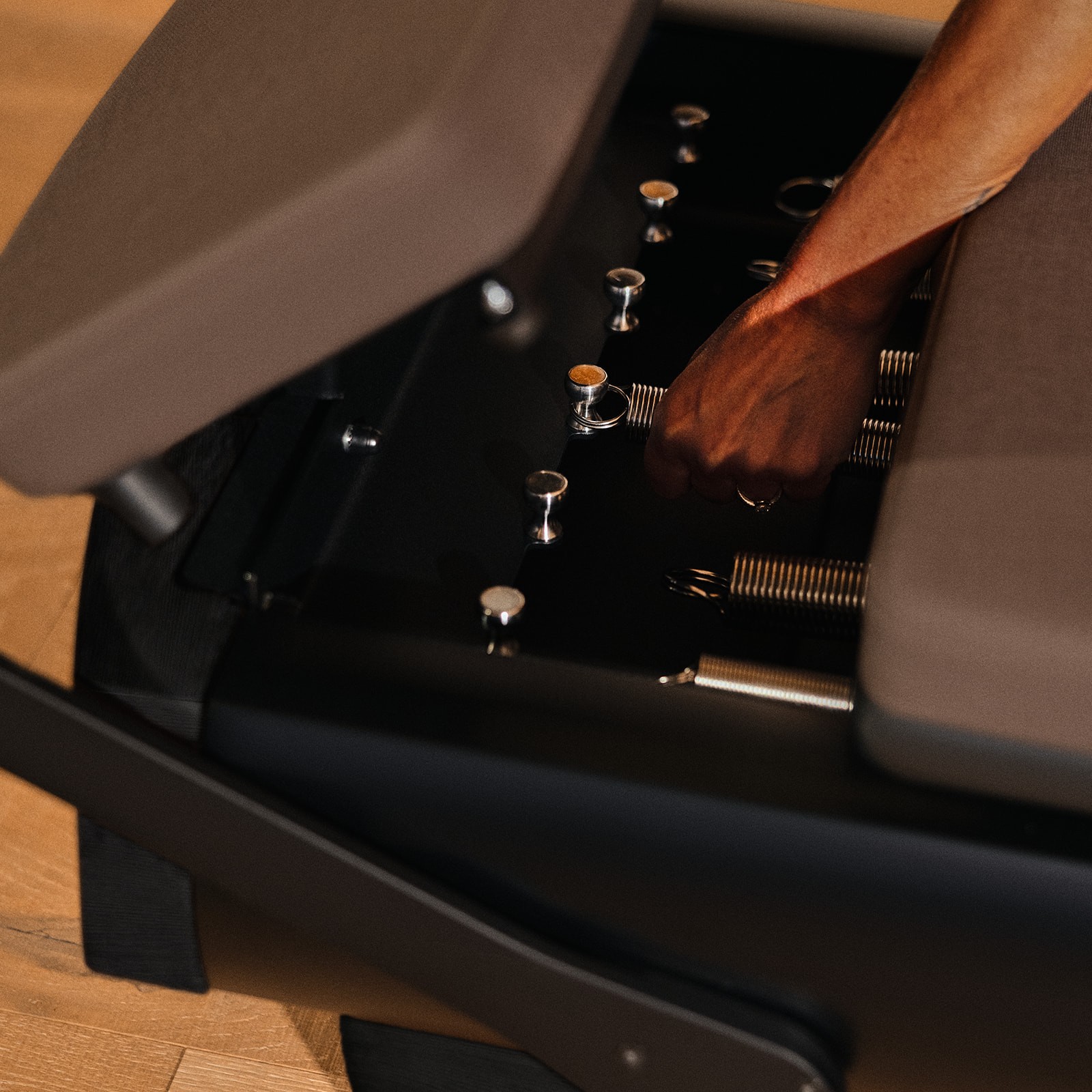 Coreformer, in partnership with NOHRD, uses the highest quality materials with an eye towards performance, durability, tactility, and natural beauty. Each piece of wood, upholstery, and frame is evaluated and handpicked to support long-term use while delighting the senses. The Coreformer is manufactured by hand by NOHRD’s experienced craftspeople, combining machine precision with the human touch to create a high-quality, enduring reformer that looks and feels exceptional.