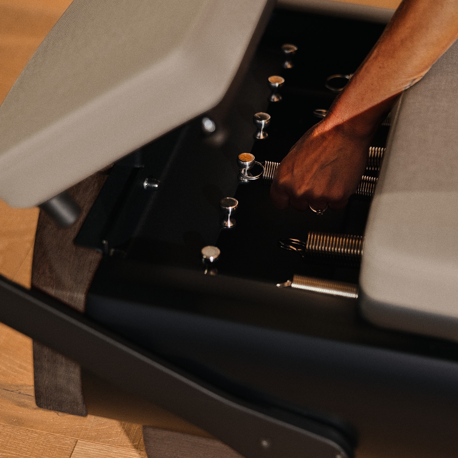 Coreformer, in partnership with NOHRD, uses the highest quality materials with an eye towards performance, durability, tactility, and natural beauty. Each piece of wood, upholstery, and frame is evaluated and handpicked to support long-term use while delighting the senses. The Coreformer is manufactured by hand by NOHRD’s experienced craftspeople, combining machine precision with the human touch to create a high-quality, enduring reformer that looks and feels exceptional.