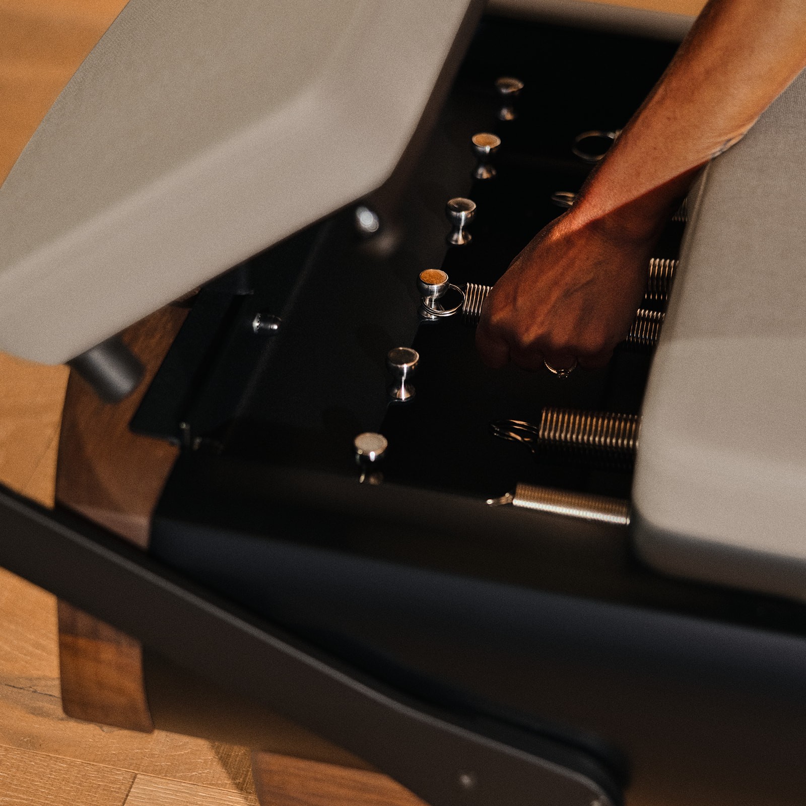 Coreformer, in partnership with NOHRD, uses the highest quality materials with an eye towards performance, durability, tactility, and natural beauty. Each piece of wood, upholstery, and frame is evaluated and handpicked to support long-term use while delighting the senses. The Coreformer is manufactured by hand by NOHRD’s experienced craftspeople, combining machine precision with the human touch to create a high-quality, enduring reformer that looks and feels exceptional.